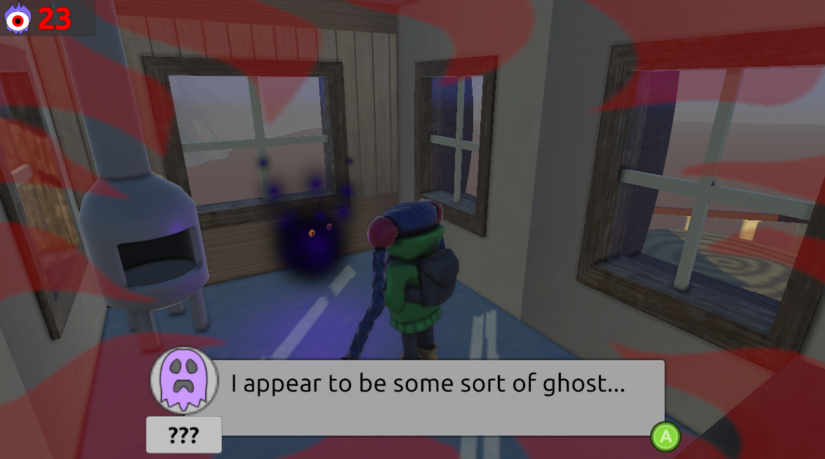 Early in the game, May finds and fixes up a device for talking to ghosts. An “Ecto-Phone” if you will. With the Ecto-Phone, May can talk to the many ghosts haunting the houses around town, and try to help them remember their names. |